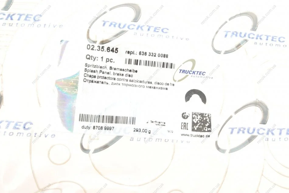 Захист диска гальмівного (переднього) MB Vito (W639) 03- TRUCKTEC 02.35.645 (6363320088, A6363320088)