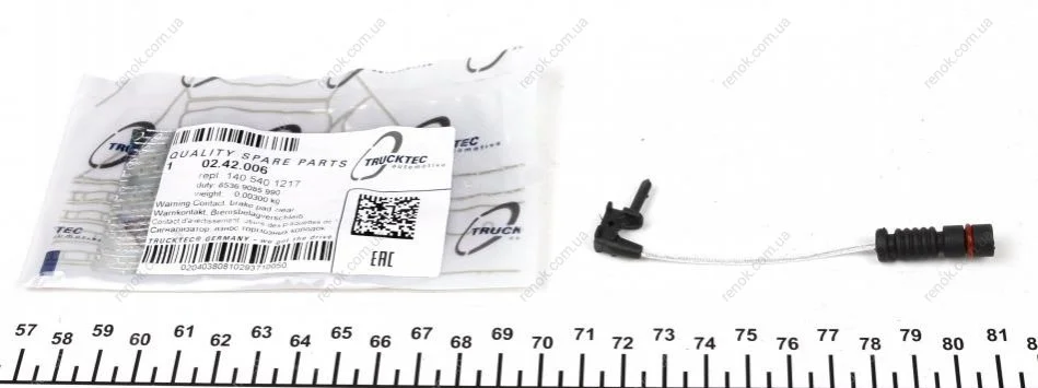 Датчик зносу гальмівних колодок (передніх) MB (W124/210) TRUCKTEC 02.42.006 (0005400217, 05099878AA, 1235400017)