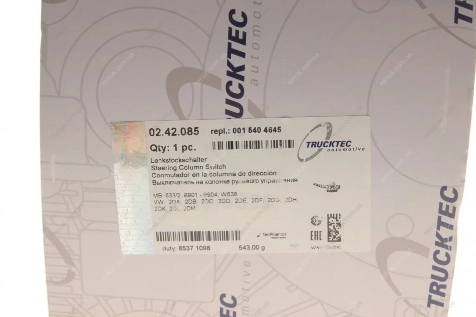 Перемикач поворотів (гітара) MB Sprinter/VW LT 96-06 (+парковка) TRUCKTEC 02.42.085 (0015404645, 0005407445, 05103745AA)