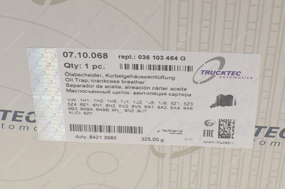 Сепаратор (мастиловіддільник) VW Caddy II/Golf -14 TRUCKTEC 07.10.068 (036103464G, 036103464D)