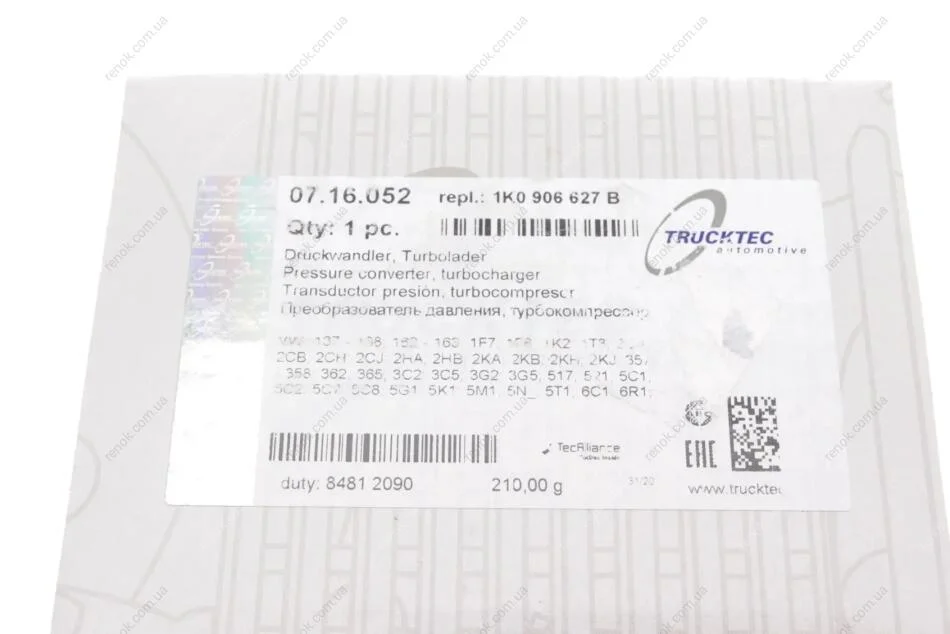 Клапан управління турбіни VW Caddy III 2.0TDI 2010- TRUCKTEC 07.16.052 (1K0906627B)