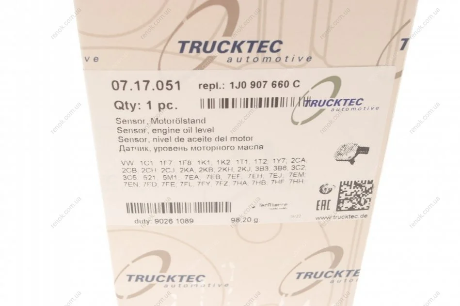 Датчик рівня оливи VW Caddy III/T5 03-15 TRUCKTEC 07.17.051 (1J0907660C, 1J0907660F, 94860614000)
