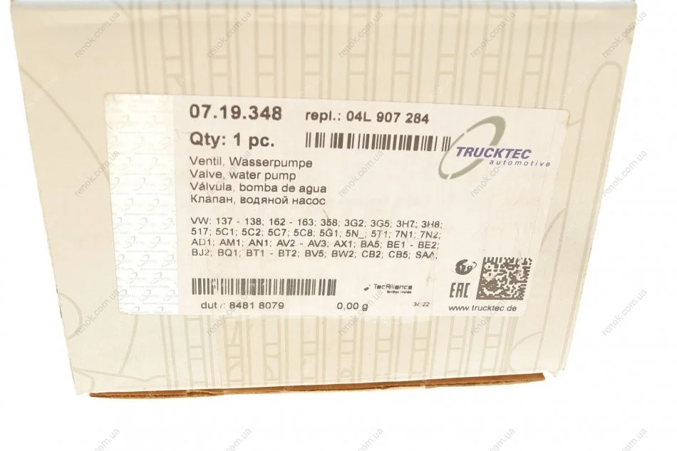 Датчик помпи води VW Caddy IV/VW Golf/T6 1.6-2.0TDI 15- TRUCKTEC 07.19.348