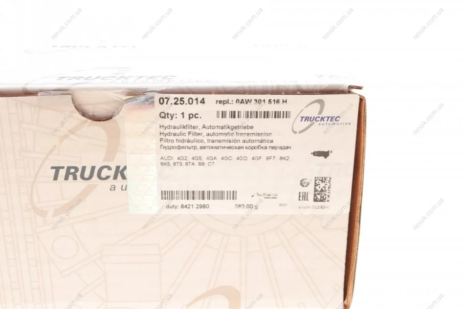 Фільтр АКПП Audi A4/A5/A6/A7 07-18 TRUCKTEC 07.25.014 (0AW301516C, 0AW301516D, 0AW301516E)
