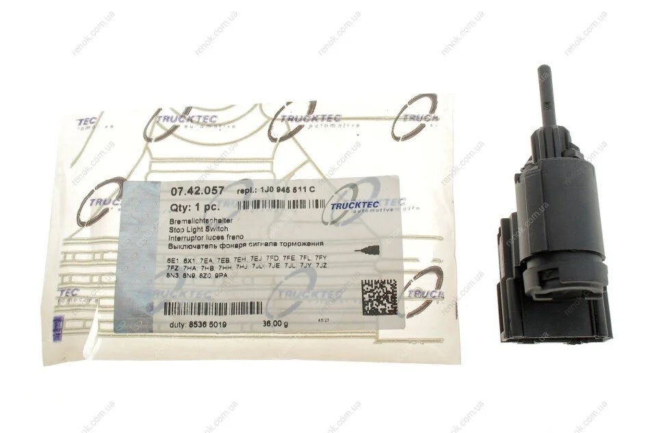 Датчик педалі гальма VW T4/T5 1.9-3.2 V6 95- (4 конт.) TRUCKTEC 07.42.057 (1070613, 1J0945511, 1J0945511A)