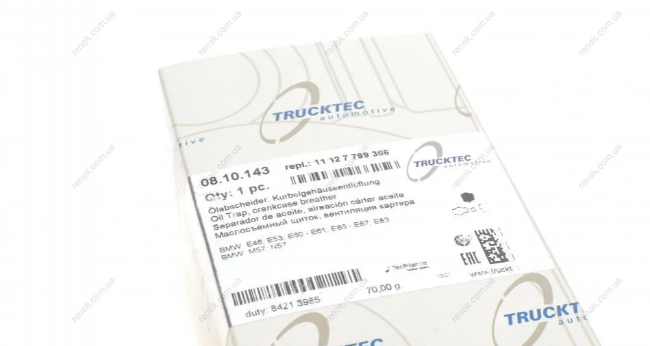 Клапан вентиляції картера BMW 3 (E46)/5 (E60/E61)/7 (E65/E66/E67) 2.5-3.0D 02-10 (сапун) TRUCKTEC 08.10.143 (11127799366)