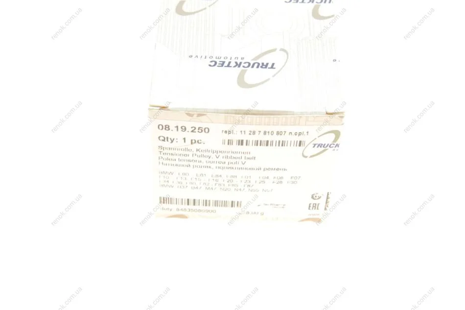 Ролик генератора MW 3 (F30/F80)/5 (F10)/7 (F01-F04) 10-18 (натяжний) B37/B47/M47/N47/N55 TRUCKTEC 08.19.250 (11287810807NCPL)