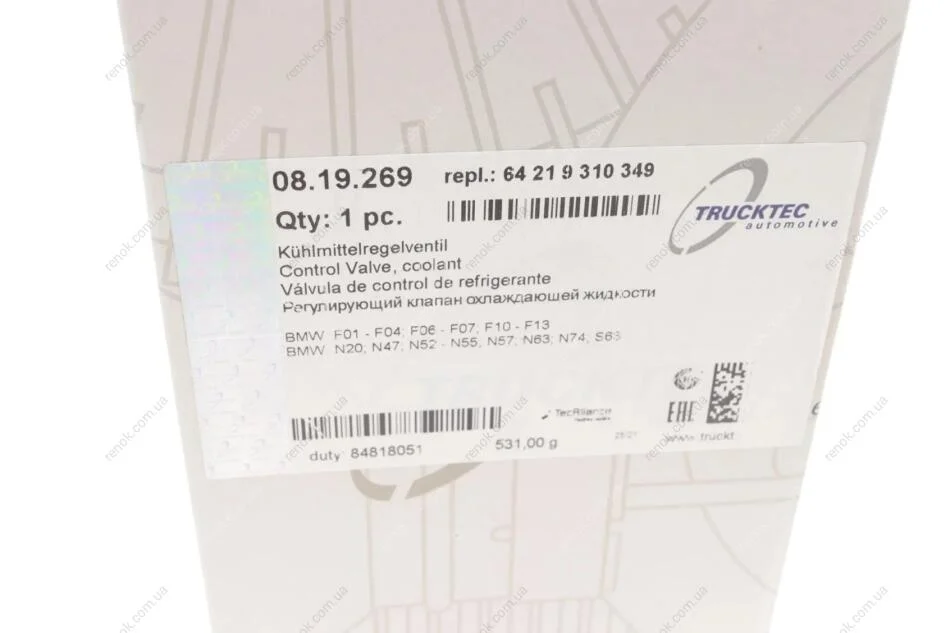 Кран пічки BMW 5 (F10)/7 (F01-F04) 09-16 N52/N55/N57/N63/N74/S73 TRUCKTEC 08.19.269