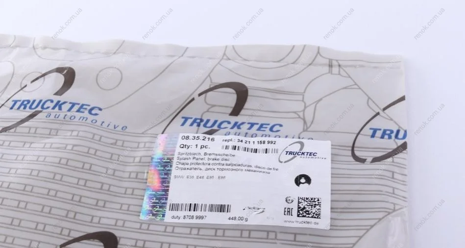 Захист диска гальмівного (заднього) (R) BMW 3 (E36/E46) 90-07 TRUCKTEC 08.35.216 (34211158992)