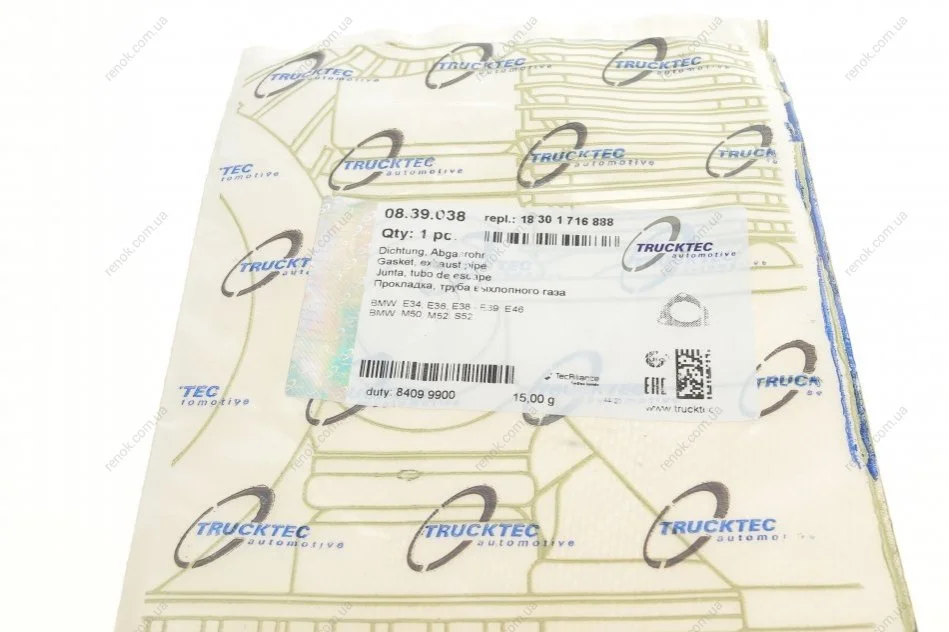 Прокладка труби вихлопної BMW 3 (E36/E46)/5 (E34/E39)/7 (E38) 90-06 TRUCKTEC 08.39.038 (1418257B00, 1418257B, 1716888)