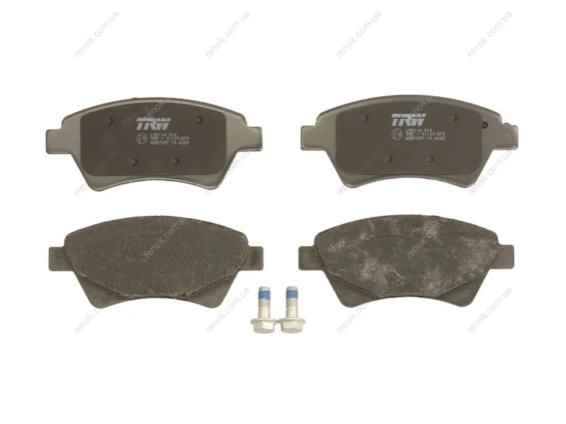 Комплект гальмівних колодок передн (з комплектуючими з гвинтами гальмівного супорта), RENAULT GRAND SCENIC II, MEGANE II, MEGANE II/KOMBI, SCENIC II 1.4-2.0 11.02- TRW GDB1597