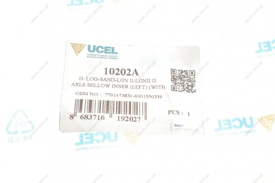 Пильник ШРКШ (внутрішній) Renault Logan 04-/Laguna II 01-/Sandero 08- (L) (з кронштейном) UCEL 10202A (392414459R, 6001547767, 6001550339)