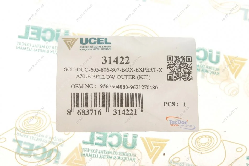 Комплект пильника РШ шарніра UCEL 31422 (329306, 4008800QAE, 7701472975)