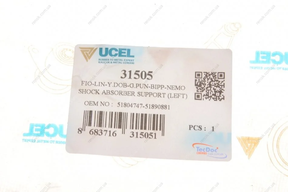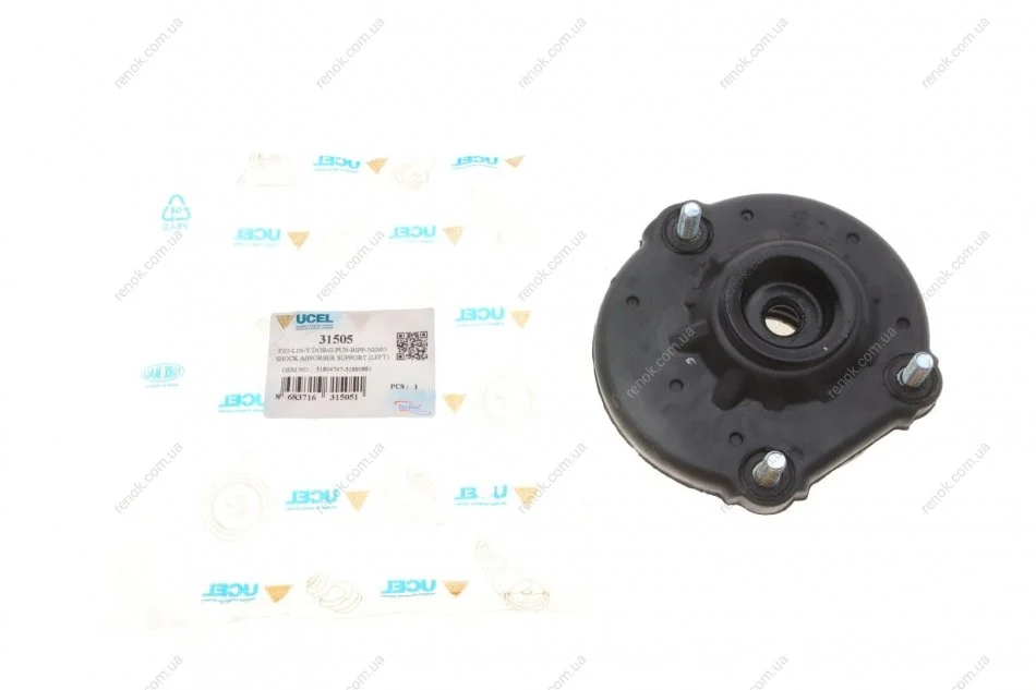 Подушка амортизатора (переднього) + підшипник Citroen Nemo 08- (L) UCEL 31505 (1609274780, 1611313980, 1611405980)