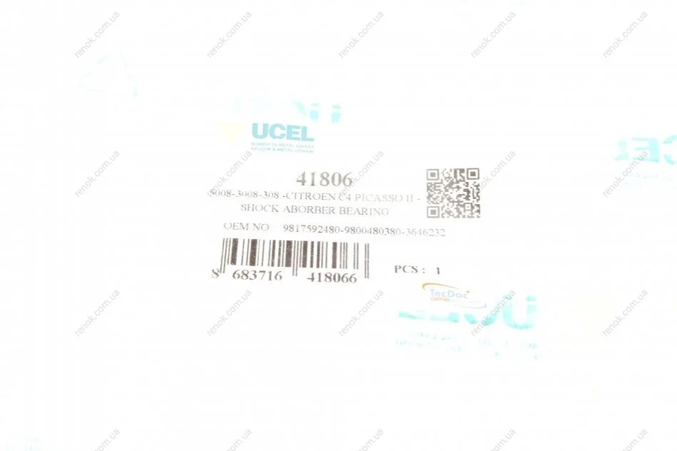 Підшипник амортизатора (переднього) опорний Citroen C4/Peugeot 3008 13-(L) UCEL 41806 (9800480380, 9817592480)