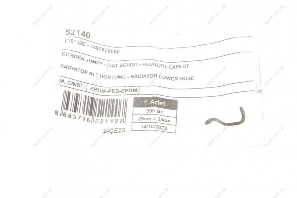 Патрубок радіатора UCEL 52140 (1351QE, 1497820080)