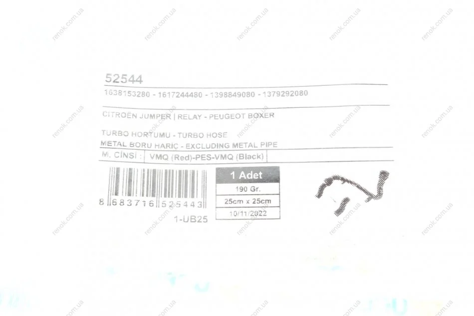 Патрубок інтеркулера Citroen Jumper/Peugeot Boxer 2.0 BlueHDi 15-19 (к-кт 2 шт.) UCEL 52544 (1617244480, 1638153280)