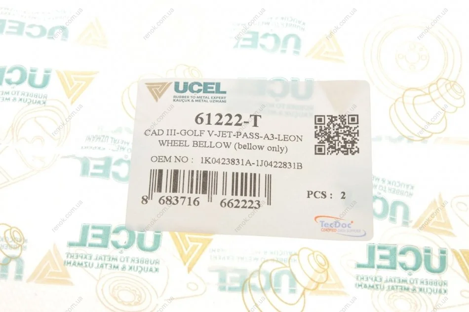 Пильник рейки рульової VW Caddy 03- UCEL 61222-T