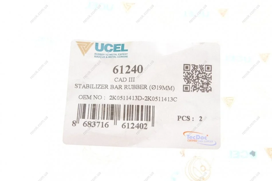 Втулка стабілізатора (заднього) VW Caddy 03- (d=19mm) UCEL 61240