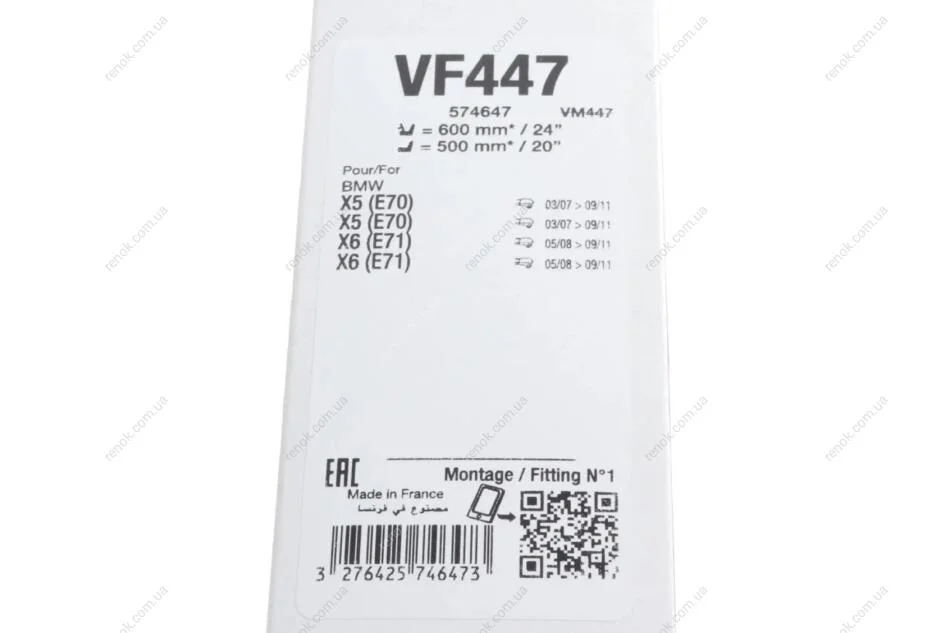 Щітки склоочисника (600/500 мм) BMW X5 (E70)/X6 (E71/E72) 07- Valeo 574647 (61610034739, 61610034741)