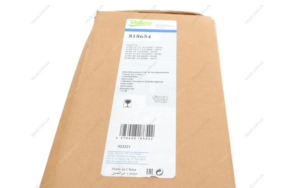Радіатор інтеркулера Audi A4/A5/A6 2.0TFSI/2.7/3.0TDI 07-18 Valeo 818654 (8K0145805E)