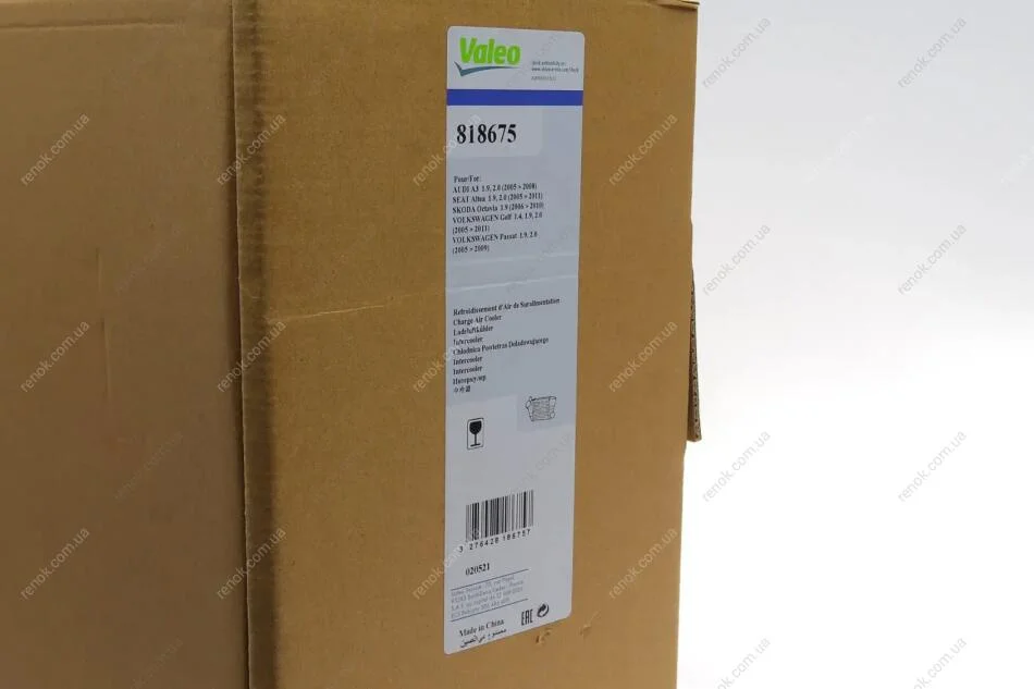 Радіатор інтеркулера VW Caddy III 1.9/2.0 TDI 04-10 Valeo 818675 (1K0145803F, 1K0145803G, 1K0145803Q)
