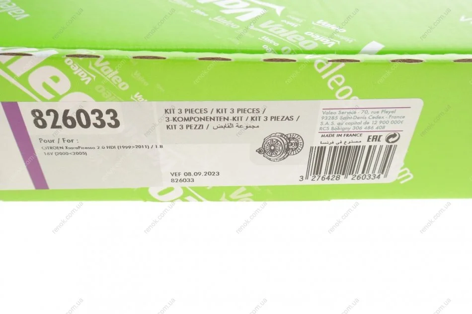 Комплект зчеплення Fiat Scudo/Ducato 2.0 JTD (d=230mm) z=18 (+вижимний) (ето замінено 826634) Valeo 826033 (2052J1, 205269, 2050R2)