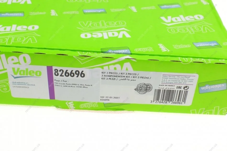 Комплект зчеплення Fiat Bravo/Punto/Stilo 1.2-1.4LPG 03- (d=200mm) (+вижимний) (ето замінено 826521) Valeo 826696 (71739511, 71748849, 71749918)