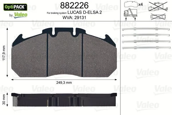 Колодки гальмівні 249,3x117,9x30 VL Valeo 882226 (5001020312, 5001855646, 81508205072)