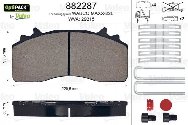 Колодки гальмівні WVA 29315; 220,5x 99,3x30 VL Valeo 882287 (14215210, 6409068282, A0014215210)