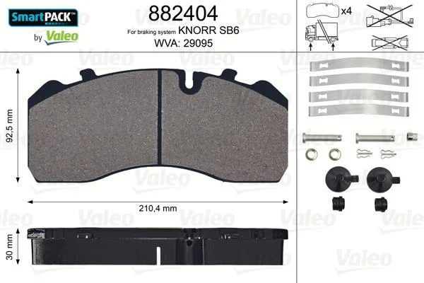 Колодки гальмові 210,4 x92, 5x30 без поперечної пластини VL Valeo 882404 (980106210, 980102930, 203121500)