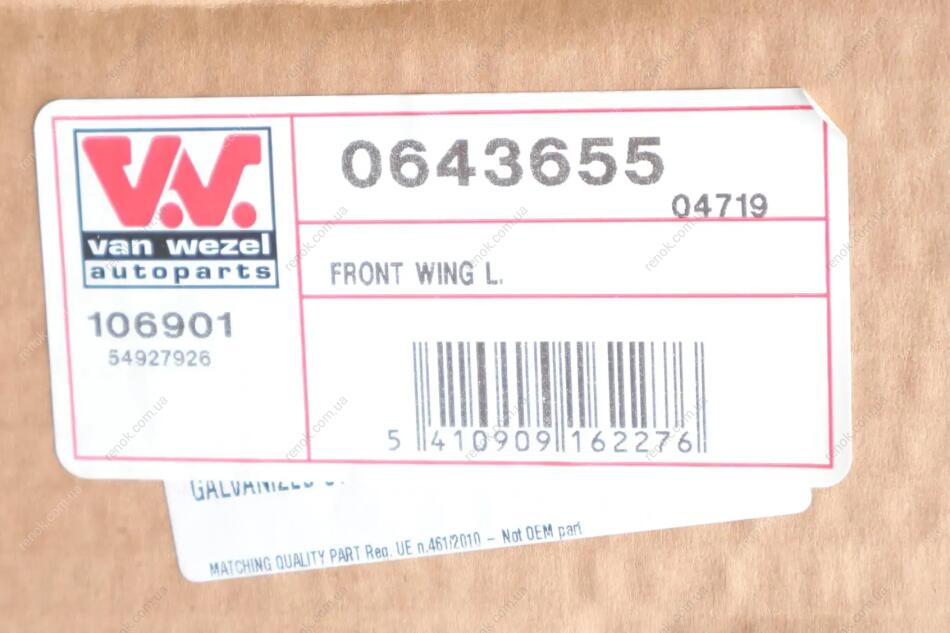Крило Van Wezel 0643655 (41358223921)
