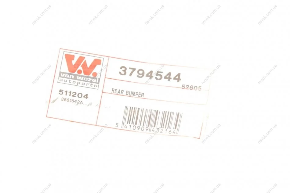 Бампер (задній) Opel Vivaro/Renault Trafic 01- Van Wezel 3794544 (4416672, 93188868, 7701066123)