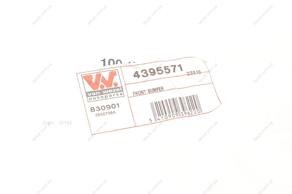 Бампер (передній) Opel Vivaro/Renault Trafic 06-14 (з отвором для протитуманних фар) Van Wezel 4395571 (7701209346)
