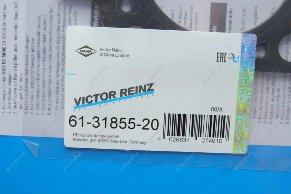 Аналоги "61-31855-20 VICTOR REINZ":