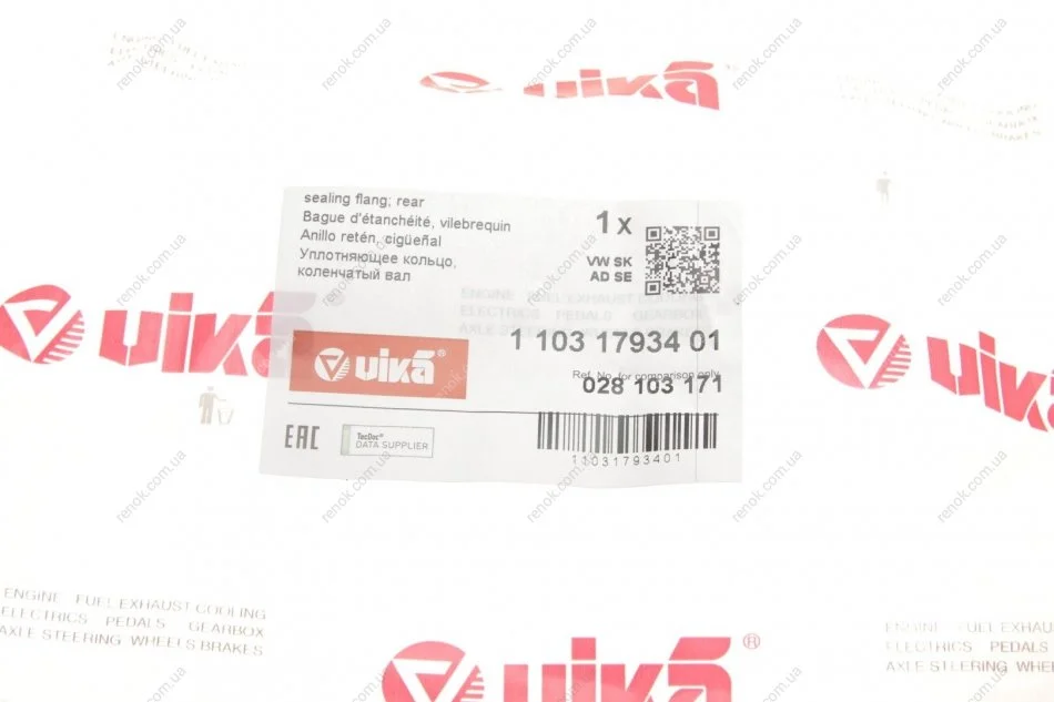 Сальник колінвала задній з кришкою Skoda Octavia (97-11) / VW Golf (97-98), Passat (97-00), Polo (95-02), Sharan (96-00), T4 Vika 11031793401 (1227900Q0J, 1227900QAB, 7700106385)