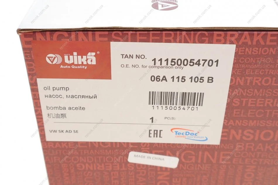 Насос масляний VW T5/Caddy II/III/Touran/Passat/Golf 1.6-2.0 94- Vika 11150054701