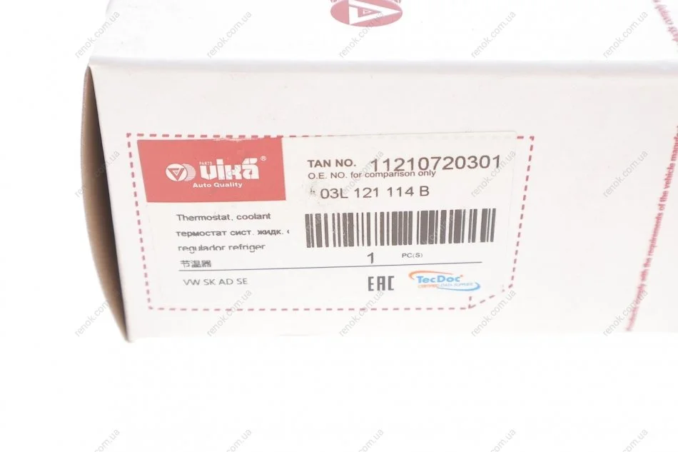 Термостат з корпусом Skoda Fabia (11-), Octavia (09-13), Roomster (11-) / VW Golf (09-), Jetta (06-10), Passat (09-11), Polo (10-12) Vika 11210720301