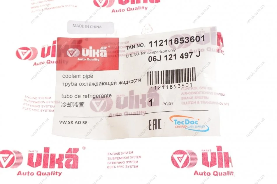 Трубка системи охолодження VW Passat 1.8 TSI 10-14 Vika 11211853601
