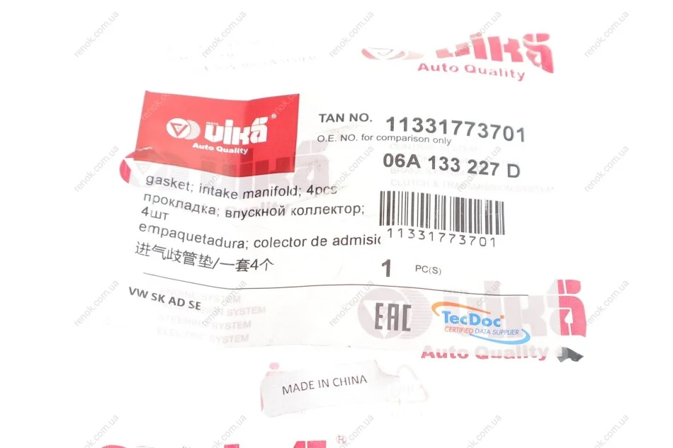 Прокладка колектора впускного VW Caddy III 1.6i 04-15 (к-кт) Vika 11331773701