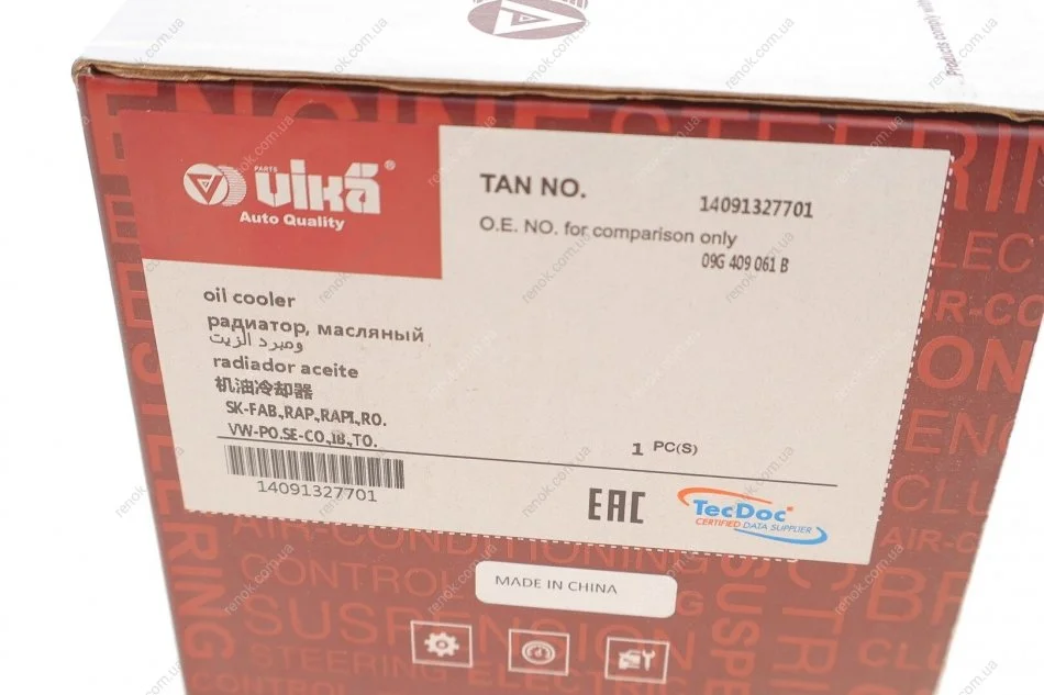 Радіатор масляний Skoda Fabia II/Rapid/VW Polo 1.0-1.9 06- (теплообмінник) Vika 14091327701