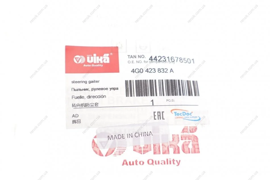 Пильник рейки рульової Audi A4/A6/Q5 07- Vika 44231678501