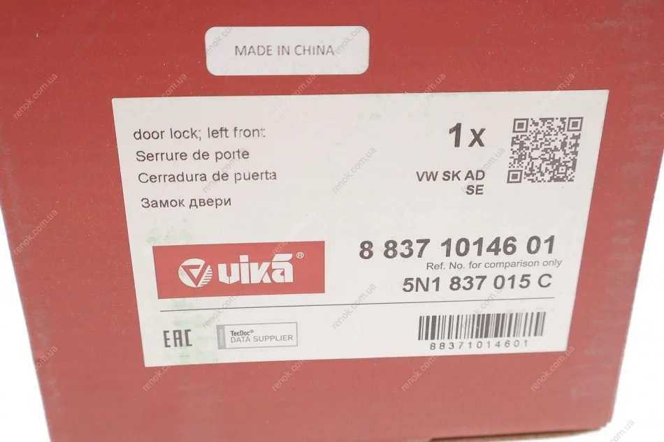 Замок двери передний левый Skoda Fabia (06-15),Octavia (12-)/VW Amarok (10-),Passat CC (11-16),Tiguan (07-09) Vika 88371014601