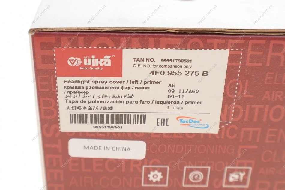 Кришка форсунки омивача фари Audi A6 04-11 (L) Vika 99551798501