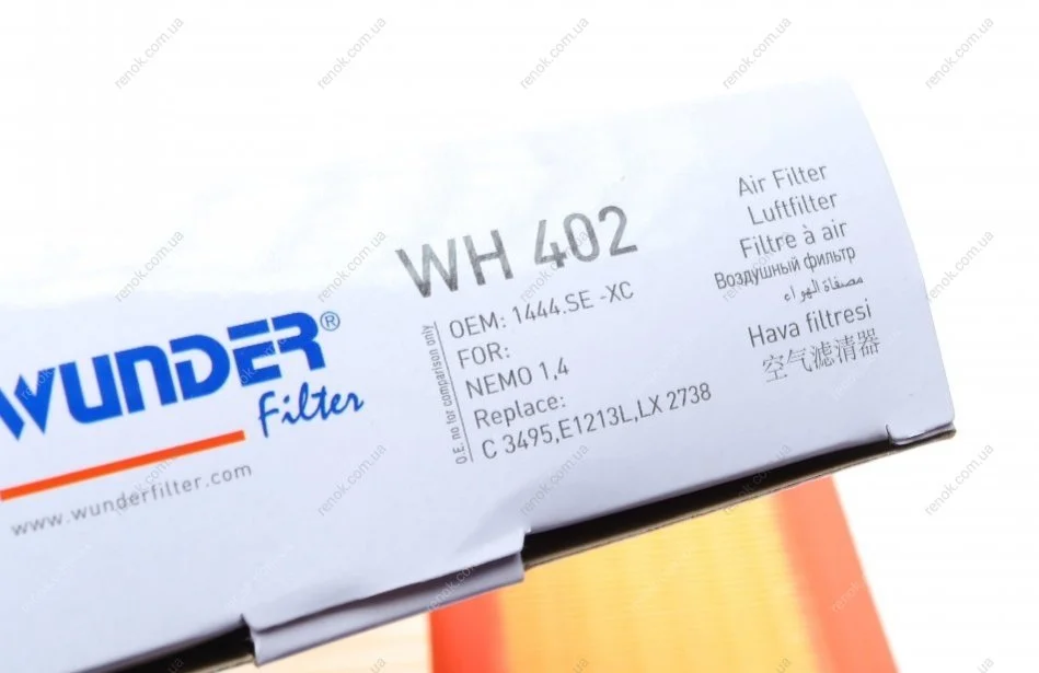 Фільтр повітряний Citroen Nemo/Peugeot Bipper 1.4i 08- WUNDER FILTER WH 402 (1444SC, 1444SE, 1444XC)