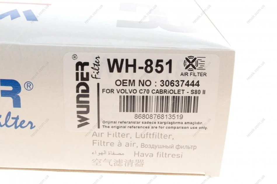 Фільтр повітряний Ford Focus 2.5 04-13/Mondeo 2.5 07-14/Kuga 2.5 08-12 WUNDER FILTER WH 851