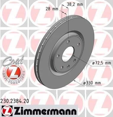 Диск гальмівний ZIMMERMANN 230.2384.20 (7B0615301C, K68192969AA, K04779712AA)