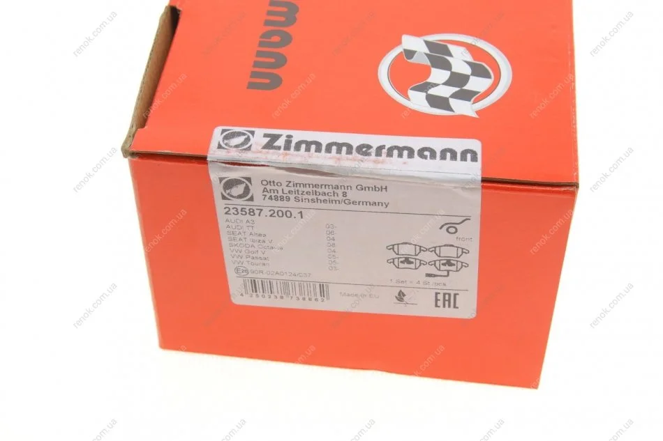 Колодки гальмівні (передні) VW Caddy 03-15 (з датчиком) (Ate - Teves) ZIMMERMANN 23587.200.1 (1K0698151C, 1K0698151E, 1K0698151)