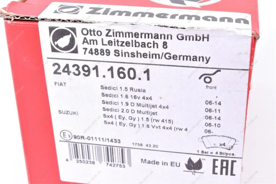 Комплект гальмівних колодок ZIMMERMANN 24391.160.1 (5581079J00, 71750033, 71742853)