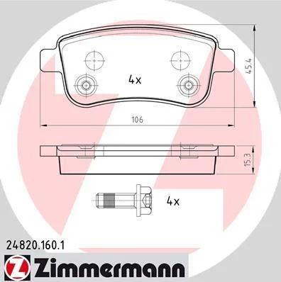 Колодки гальмівні (задні) Renault Fluence/Megane/Scenic 08- (Bosch) ZIMMERMANN 24820.160.1 (440601416R, 440603734R, 440604694R)